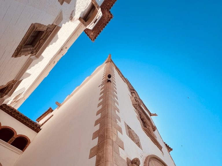 El casco antiguo de Sitges ocupa un pequeño promontorio donde nació la villa medieval, un lugar estratégico desde el que se controlaba la costa. Durante siglos estuvo protegido por murallas y torres defensivas que rodeaban la iglesia y las primeras casas del pueblo.